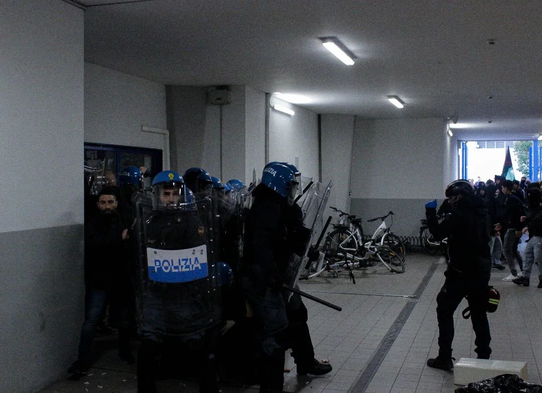 Fin dalle prime ore del mattino di lunedì 17 novembre 2025, davanti al Palazzo di Giustizia di Torino sostano diverse camionette delle forze dell’ordine. A poca distanza dagli automezzi, una schiera di agenti in assetto antisommossa presidia l’ingresso del tribunale. Alle 11 di oggi, infatti, davanti al giudice Giorgio Potito, si presenterà lo studente del Liceo Gioberti che a causa dei disordini avvenuti durante la manifestazione dello scorso venerdì 14 novembre, è stato arrestato con l’accusa di resistenza e lesioni a pubblico ufficiale. Il ragazzo, secondo quanto emerso dai filmati analizzati dagli inquirenti, avrebbe lanciato verso le forze dell’ordine un cestino posacenere in metallo durante gli scontri avvenuti nel palazzo della Città Metropolitana.
