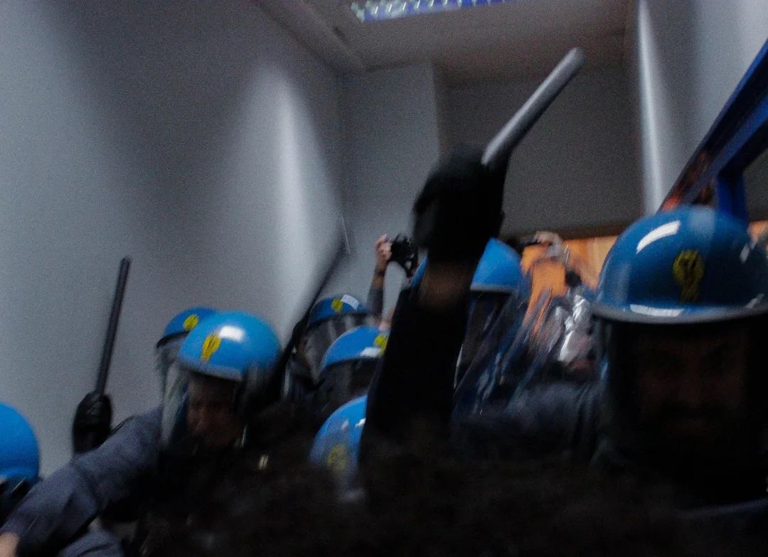 Lo studente non ha voluto sottoporsi all'interrogatorio, ma ha voluto rilasciare dichiarazioni spontanee ripercorrendo gli eventi della giornata di protesta.Ha spiegato che la manifestazione si era diretta alla sede della Città Metropolitana per cercare un confronto, citando precedenti interazioni avute durante l'occupazione delle scuole dello scorso ottobre. "Quando siamo arrivati abbiamo trovato gli ingressi presidiati dalla polizia," ha raccontato. "C'era un cancello, e noi ci siamo comunque avvicinati agli uffici per cercare qualcuno con cui parlare. Non abbiamo trovato nessuno, ma dopo pochi istanti sono arrivati i celerini in assetto antisommossa".