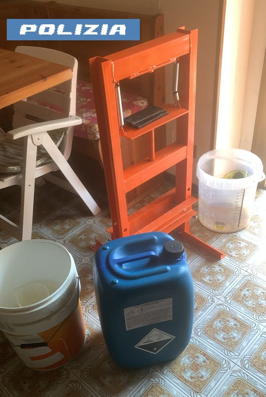 Gli accertamenti non si sono fermati alla casa dove l’uomo si trovava ai domiciliari. Le verifiche sono state estese anche a un secondo alloggio, sempre nella sua disponibilità e situato nelle vicinanze. Qui gli agenti hanno rinvenuto materiale per la lavorazione e il confezionamento della droga, oltre a una pressa con martinetto idraulico, utilizzata per compattare lo stupefacente e prepararlo alla commercializzazione. Un dettaglio che rafforza l’ipotesi di un’attività strutturata e non occasionale.