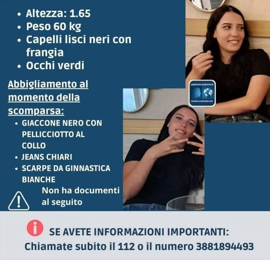 Le indagini restano aperte e le ricerche sono tuttora in corso. Le forze dell’ordine rinnovano l’appello a chiunque ritenga di aver visto Melissa Manfredi o sia in possesso di informazioni utili: ogni dettaglio può risultare decisivo e deve essere segnalato contattando il 112.