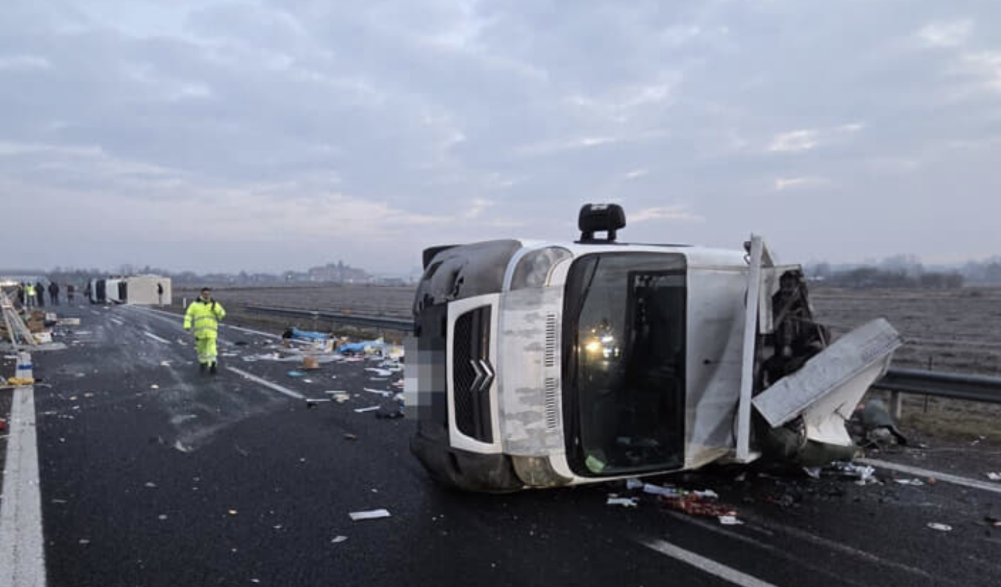 Mattinata di caos sull’autostrada Torino-Aosta: due furgoni ribaltati a Foglizzo