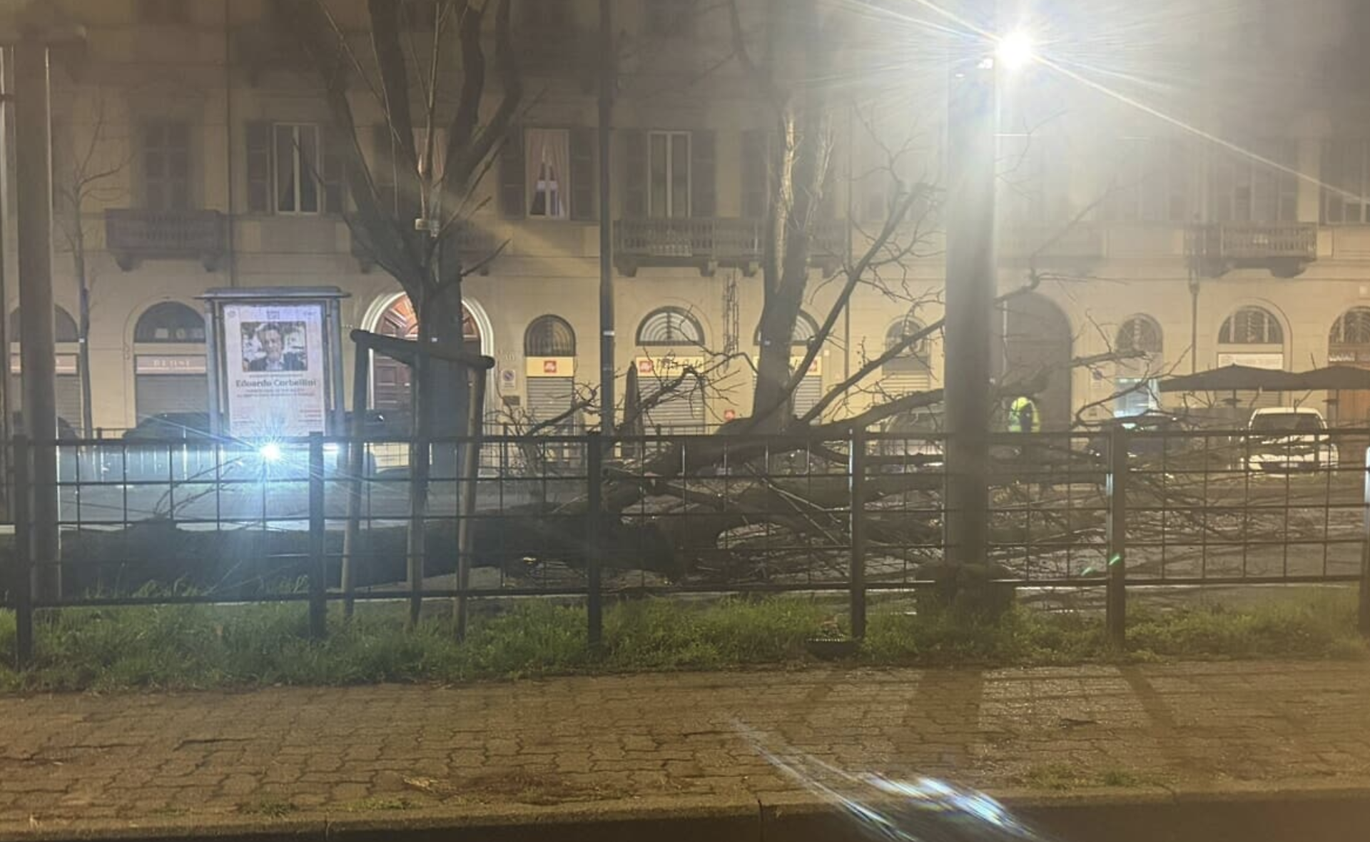Un boato improvviso, poi il traffico fermo e le luci dei mezzi di soccorso a illuminare la carreggiata. È accaduto nella tarda serata di domenica 1 febbraio 2026, quando un albero è improvvisamente caduto all’incrocio tra corso Re Umberto e via San Quintino, nel pieno centro di Torino, finendo di traverso sulla strada e costringendo alla chiusura del tratto interessato.