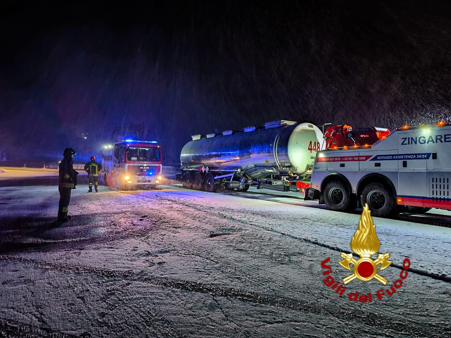 Un intervento lungo e delicato, durato tutta la notte, ha impegnato i Vigili del fuoco del comando di Torino sull’autostrada A32, nel territorio di Chiomonte, all’interno della galleria Cels. L’allarme è scattato a partire dalle 18 di ieri, quando una cisterna contenente sostanza ADR si è improvvisamente staccata dalla motrice che la stava trainando durante il transito in galleria.