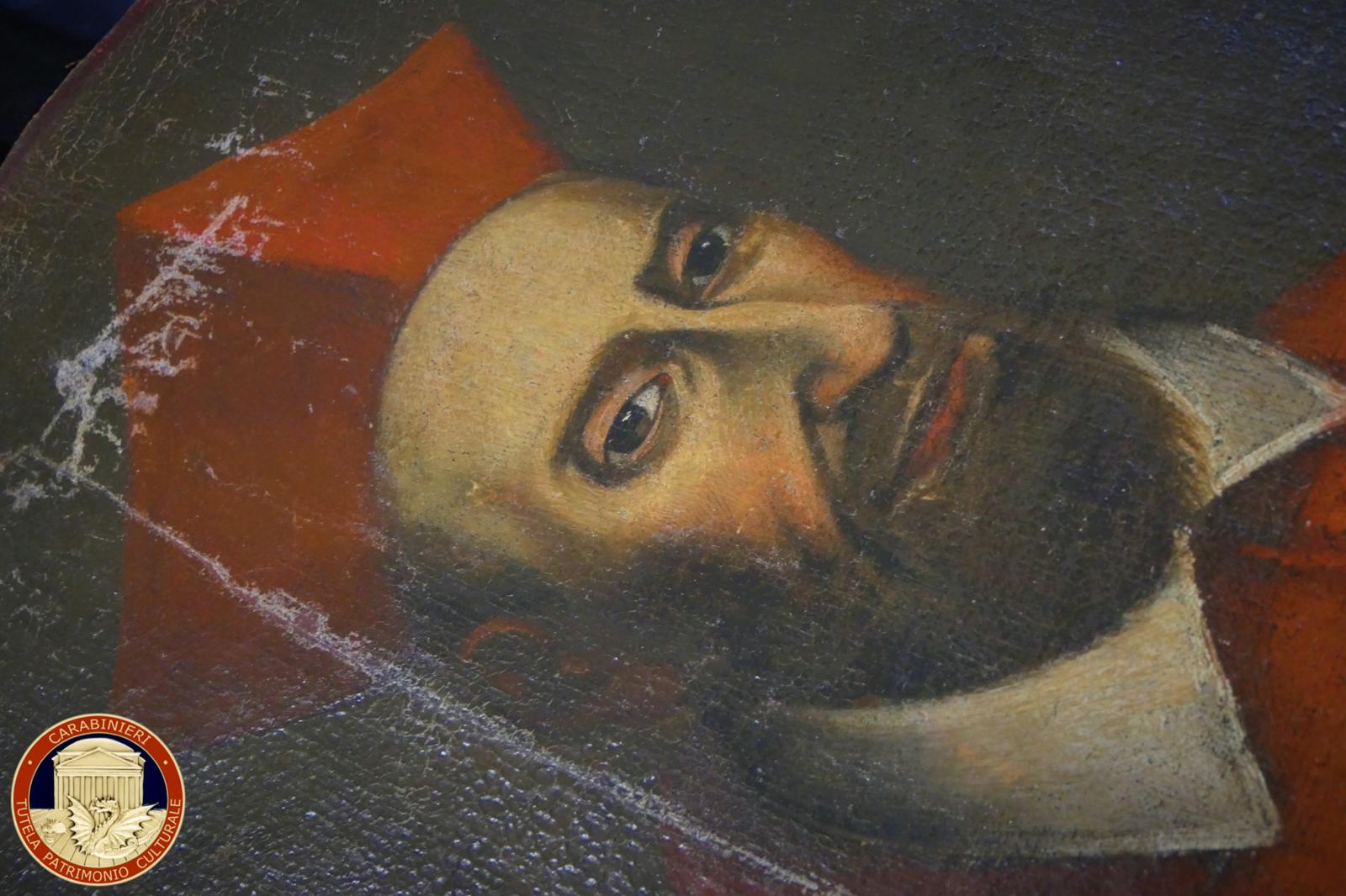 Tra queste, un dipinto a olio su tela, presentato come raffigurante San Carlo Borromeo, ha attirato l’attenzione degli specialisti. L’opera risultava “centinata”, ossia tagliata nella parte superiore, probabilmente per adattarla a una nuova cornice o per modificarne l’identità iconografica. Nonostante questo intervento, l’analisi incrociata con le immagini presenti nella banca dati ha consentito di ricondurre il quadro al ritratto del Cardinale Guala Bicchieri, trafugato nel 2011 proprio dalla Basilica di Sant’Andrea.
