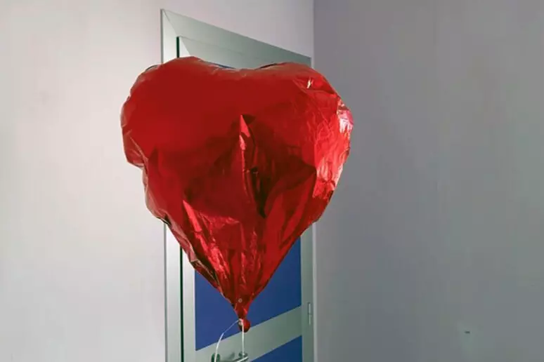 Un palloncino rosso, a forma di cuore, oscilla appeso al letto di Elsa - Foto ANSA