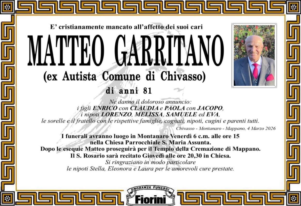 Per molti bambini era semplicemente “l’autista dello scuolabus”, una presenza familiare che ogni mattina li aspettava alla fermata e li accompagnava verso la scuola. Per le famiglie e per chi lo conosceva era invece un uomo sempre disponibile, discreto e pronto ad aiutare gli altri. Si è spento all’età di 81 anni Matteo Garritano, figura molto conosciuta tra Chivasso e Montanaro, due comunità che oggi ne ricordano con affetto la lunga vita dedicata al lavoro e al volontariato.