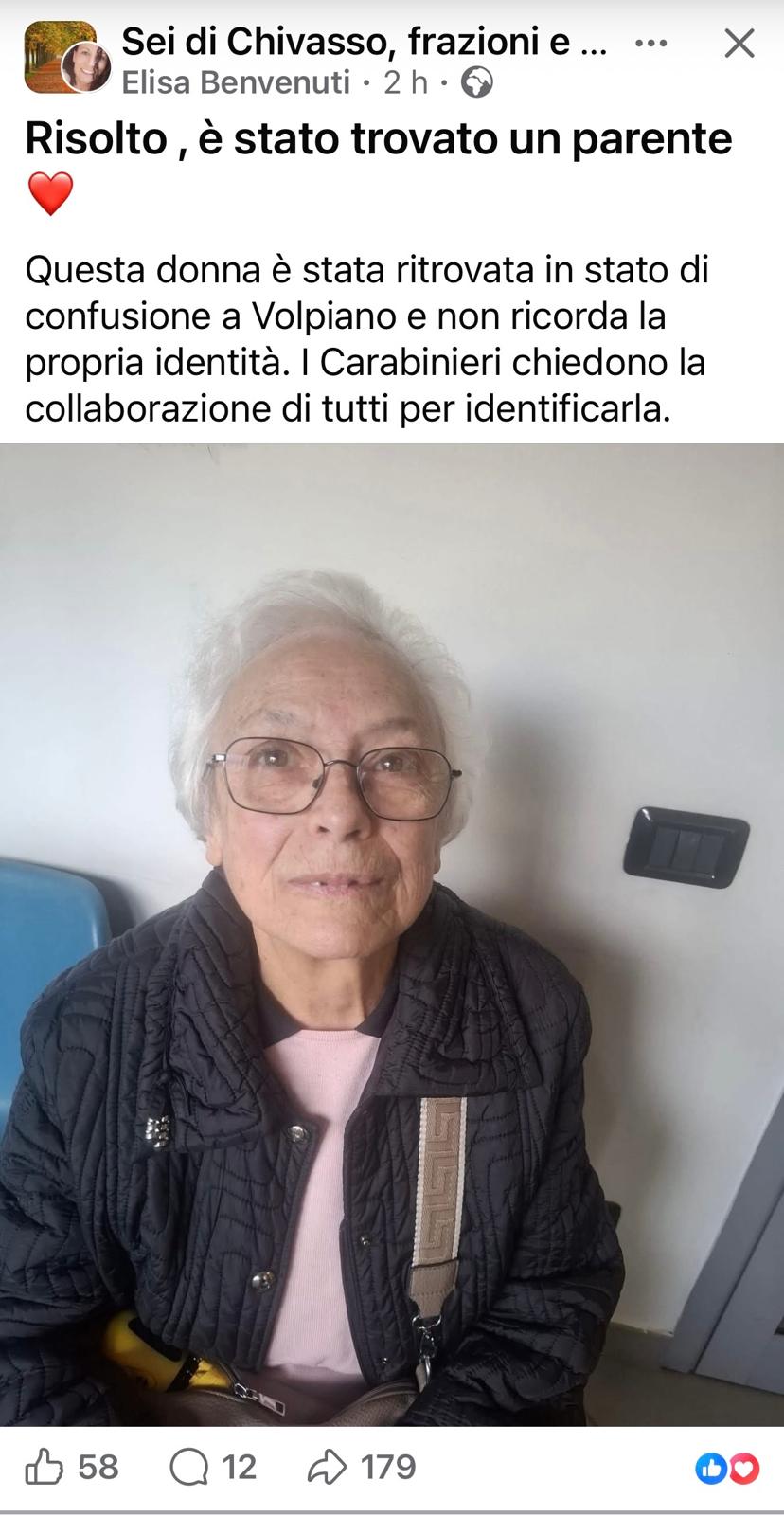 Per alcune ore, la preoccupazione ha corso veloce quanto i messaggi condivisi sui social e nei gruppi locali. Una donna anziana, trovata a Volpiano in evidente stato confusionale, non riusciva a dire chi fosse, dove abitasse né a fornire i nomi dei propri familiari. Una situazione delicata, che ha subito fatto scattare l’intervento delle autorità e una mobilitazione diffusa tra cittadini e comuni vicini. Alla fine, proprio quella rete di attenzione collettiva ha contribuito a riportare la vicenda verso il suo esito migliore: la donna è stata riconosciuta ed è tornata a casa con la sua famiglia.