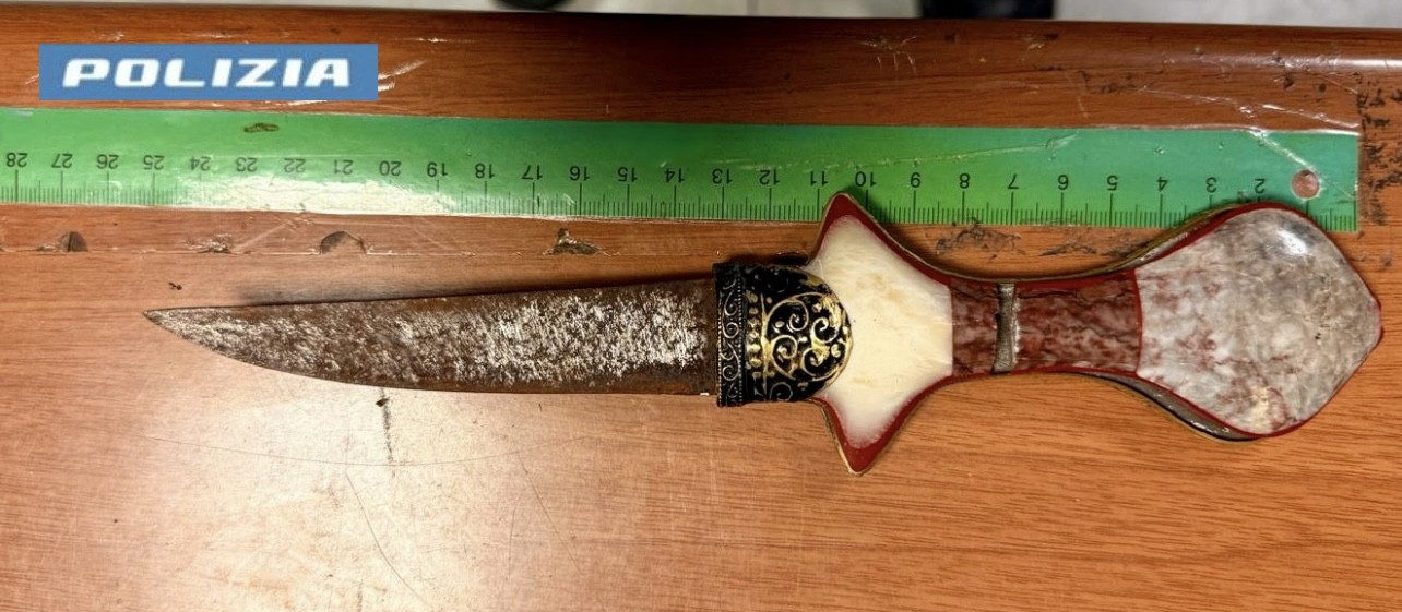 A quel punto è stato utilizzato il taser: alla vista del dispositivo, l’uomo ha desistito, permettendo ai poliziotti di avvicinarsi e disarmarlo senza ulteriori rischi. L’arma, un pugnale lungo circa 25 centimetri, è stata immediatamente sequestrata.
