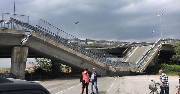 Cavalcavia crolla su auto dei carabinieri. Foto ANSA