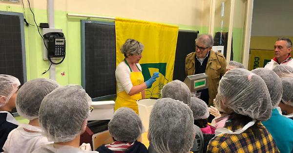 Nelle aule della scuola Aldo Peno di Cuorgnè le classi quinte hanno potuto prima ascoltare dalla voce del dottor Barone dell’Asl To 4 e del dottor Ferrari della Coldiretti alcune importanti informazioni per una sana alimentazione che valorizzi i prodotti locali e il ritmo delle stagioni, poi grazie all’azienda di Bruno Mara guardare come si fa lo yoghurt, alla Societa Agricola San Pietro come si fa il formaggio, con l’azienda di Beruatto Angela hanno imparato a fare l’impasto del pane e con l’Azienda La Cantello di Giorgio Bugni le marmellate e i succhi.