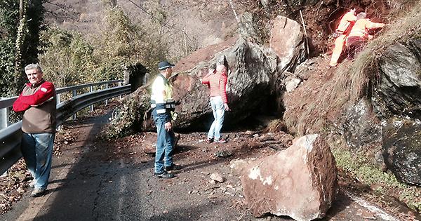 Il masso è stato sgretolato dai tecnici della Provincia con l'utilizzo di un martello demolitore.