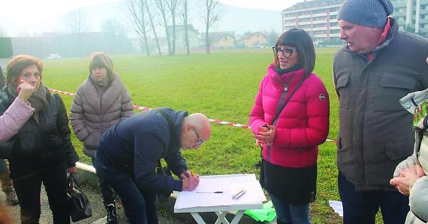 Un cittadino sottoscrive la raccolta firme per chiedere un'area cani e un'area gioco per bambini