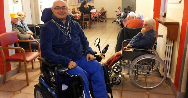 Nel 2001 Gionni ha trovato un lavoro presso il Comune di Sparone, durato sette anni e mezzo. Poi ha cominciato a far volontariato alla casa di riposo Villa Nerina, sempre tramite il Ciss 38. "Mi occupo di animazione- dice-. Quando ho sentito questa parola, appena sono arrivato qui, mi sembrava impossibile. Animare gli anziani, proprio io, che mi trovo in queste condizioni e che sono sempre stato piuttosto timido... E invece quest'esperienza mi ha dato molto. Mi sono aperto tantissimo. Sto bene con loro. E' come essere in famiglia".