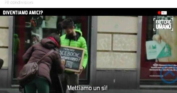 Al tempo di internet, dei social network, ed in particolare facebook, è ancora possibile stringere amicizia nel mondo reale, così, per strada, da un incrocio di sguardi, senza filtri virtuali? E' il quesito che si è posto il programma televisivo "Fattore Umano", nella prima puntata andata in onda giovedì scorso.