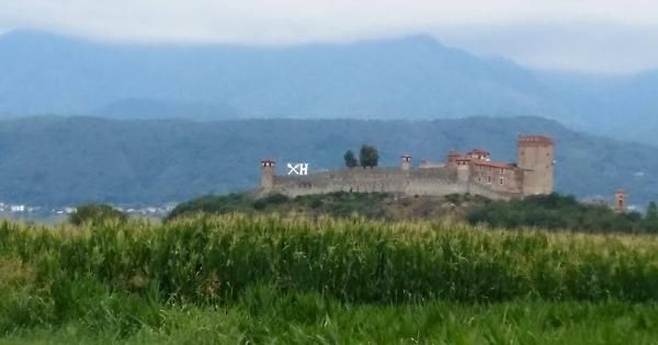 Un gigantesco striscione recante la "H" di "Hotel" ed una forchetta incrociata ad un coltello. Per chiarire che qui, al Castello di Pavone, si mangia e si dorme. Che prima di essere una dimora storica, importante simbolo artistico e culturale, l'edificio medievale è, a tutti gli effetti, un esercizio commerciale.