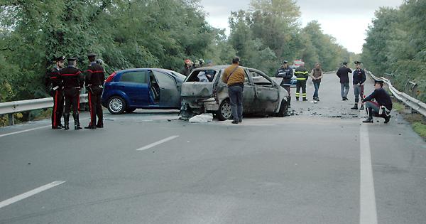 La scena dell'incidente frontale