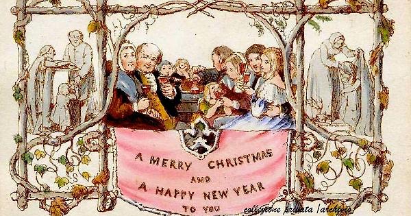 L’espressione Merry Christmas nasce nel Regno Unito. In inglese antico la parola merry significava piacevole più che felice o gioioso, ma già nel Cinquecento veniva utilizzata di tanto in tanto per augurare buon Natale. La prima attestazione dell’espressione risale al 1565 ed è contenuta nel manoscritto municipale della cittadina inglese Hereford: «And thus I comytt you to God, who send you a mery Christmas» («Vi raccomando a Dio, che vi mandi un Buon Natale»). Nel 1843 fu il Canto di Natale di Charles Dickens a renderla popolare e modificare il suo significato, associandola più a gioviale e festoso: nel romanzo Ebenezer Scrooge irride il Natale dicendo «If I could work my will… every idiot who goes about with ‘Merry Christmas’ on his lips should be boiled with his own pudding» («Se potessi fare a modo mio, ogni idiota che se ne va attorno con cotesto ‘allegro Natale’ in bocca, avrebbe a esser bollito nella propria pentola», nella traduzione italiana più diffusa). Oltre alla grande popolarità dell’opera di Dickens, contribuì alla fortuna del termine anche il primo biglietto di auguri preparato per Natale (stampato a sua volta nel 1843) che conteneva l’espressione A Merry Christmas and a Happy New Year to You. L’aggettivo merry venne sempre più diffuso, venendo associato a un clima festoso e particolarmente sopra le righe.