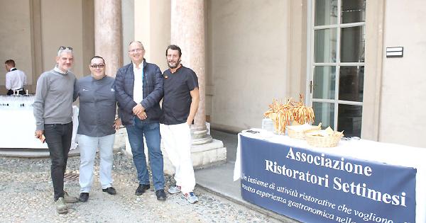 La cerimonia di apertura della mostra si è conclusa con un graditissimo e raffinato buffet offerto dall’Associazione Ristoratori Settimesi, rappresentata dal presidente René Stillitano e dall’associato Gabriele Santolin, chef del ristorante Ultimo Borgo recentemente premiato come “Chiocciola d’oro” a Cherasco, e il Ristorante Da Sergio. Durante la giornata hanno servito un’ottima selezione di vini piemontesi accompagnati da gustosi appetizer. Era presente anche Aldo Corgiat, presidente di Fondazione ECM.