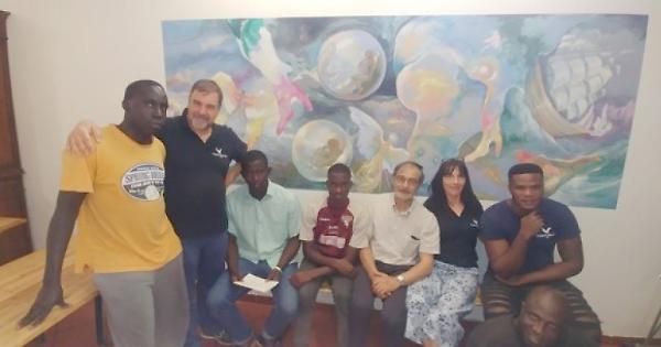 La natura della collaborazione tra Geraci e il centro ci viene rivelata dalla vice-coordinatrice Giulia Poma “Orazio ha iniziato come volontario mettendosi a disposizione sin dall’apertura del centro, insegnando ai ragazzi le prime parole di italiano e aiutandoli a localizzarsi dal punto di vista geografico in quanto molti di loro, mi racconta, giacché io sono in questo centro della nostra cooperativa dal 2017, non sanno neanche di essere in Italia.” L’opera, di quasi tre metri quadri, è stata realizzata nella sala comune del centro. Sul perché il pittore abbia deciso di creare il dipinto è lo stesso Geraci a spiegarlo: “Nel contesto della mia presenza nel centro ho pensato di decorare alcuni ambienti per renderli più piacevoli. Ho fatto tre bozzetti e quasi all’unanimità (i ragazzi ospiti del centro e gli operatori della cooperativa) hanno deciso quello in parete. Il titolo Migranti o Migratori porta in se parte del messaggio dell’opera ”I migratori dovrebbero essere prevalentemente gli uccelli ma non c’è una differenza sostanziale con i migranti se non ché per taluni i confini non ci sono per gli altri invece sono presenti. Gli uccelli infatti non hanno il passaporto quando volano da una parte all’altra”. I contenuti che il dipinto si muovono su due direttrici: una didattica, per i ragazzi del centro, e l’altra sul messaggio personale dell’autore. La presenza di Superga “Che identifica il luogo geografico dove sono i ragazzi attualmente“; dello Stivale “L’Italia con i colori della bandiera servono per memorizzarne la forma ed associarne i colori” e della Sicilia “Oltre ad essere io stesso siciliano rappresenta la punta più avanzata, con Lampedusa, dell’ingresso in Europa”, vogliono offrire ai ragazzi un punto di riferimento geografico come lo è per i samnauresi e per i torinesi la stessa Superga. Il messaggio che Geraci vuole trasmettere è invece raffigurato da alcune rappresentazioni. L’Angelo e la Farfalla, per rappresentare il viaggio dei migranti “La farfalla porta con se un doppio significato: quello del volo e il viaggio del migrante. Corpo da umano e ali che ricordano la forma dell’Africa”; le Sfere “Quella in alto rappresenta un mondo dove coesistono una figura bianca e una nera. In quella sottostante invece c’è un embrione di color cioccolato che dovrebbe essere il risultato dell’incrocio”; L’Africa che si incunea dentro l’Italia come per creare un unico continente non diviso dal mare e il Veliero. Ma è lo stesso Geraci a riportare il discorso su un piano più leggero “Come pittore dico che per prima cosa la pittura deve essere piacevole. Poi ognuno gli da il significato che vuole. Bisogna sempre ricordarsi che è un po’ di colore in un muro e quindi cerco di renderlo piacevole con i colori che ci metto”.