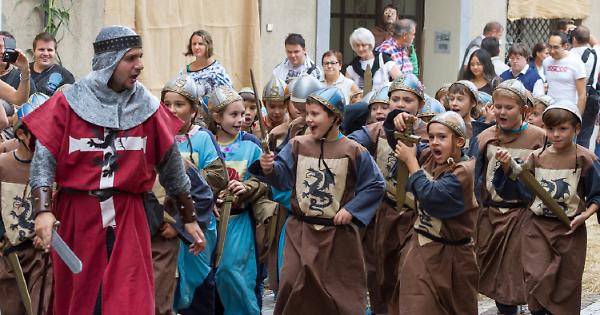 I bambini verranno suddivisi in squadre/gruppi e giocheranno per le vie del paese, partendo dal castello e ritornando al castello per la battaglia finale e l’incoronazione del vero Re. Alcuni genitori verranno coinvolti nel gioco.