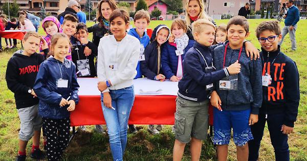 I ragazzi che hanno partecipato simbolicamente alla piantumazione degli alberi