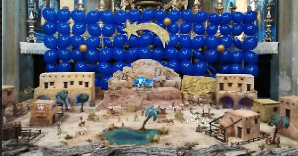In foto, il presepe di Paolo Moretti esposto sull’altare della Chiesa