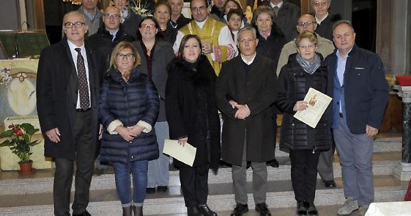 Comunità dei fedeli in festa, nella parrocchia di San Giacomo Maggiore, domenica 24 novembre, dove nella santa messa delle 11 sono stati celebrati i Lustri di Matrimonio. Don Maurizio Morella ha accolto le coppie di sposi ed indirizzato loro un pensiero speciale, invitandoli a rinnovare le promesse del Sacramento. Al termine della funzione, il Parroco ha consegnato a tutti gli sposi una pergamena, a ricordo di questo giorno speciale: Adriana Darù e Luciano Canil, Marina Zeppegno e Carlo Tibi, Maria Rita Fedele e Salvatore Gagliardi hanno festeggiato le Nozze d’Oro, mentre Anna Careggio e Livio Dellamula i 35 anni di matrimonio, Nicoletta Capula ed Enzo Castenetto i 30 anni, Daniela Costantino e Sergio Lazzareschi, Simonetta Borghesio e Salvatore Idali le Nozze d’Argento, Maria Antonella Wilhelm e Marco Careggio i 15 anni, Letizia Pistorello e Giuliano Blatto 10 anni. Nel corso della santa messa, don Maurizio ha anche recitato una preghiera speciale per Santa Cecilia, patrona del Canto e della Musica, ringraziando di cuore la Cantoria parrocchiale, per il servizio che rende alla chiesa.