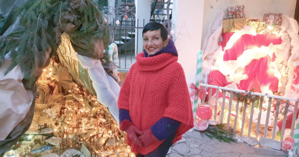 Una ricorrenza che ormai si ripete da venticinque anni. E’ quella del presepe nel cortile di casa con una gigantesca casa di Babbo Natale realizzati da Carmen Andrina in Vitton Mea, 58 anni,