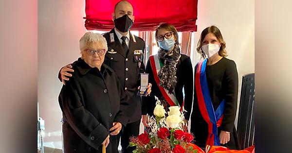 NELLA FOTO I familiari del reduce Plinio Gallocchio, premiati nella sala della Torre dalla sindaca Elena Piastra e dalla presidente del Consiglio, Carmen Vizzari
