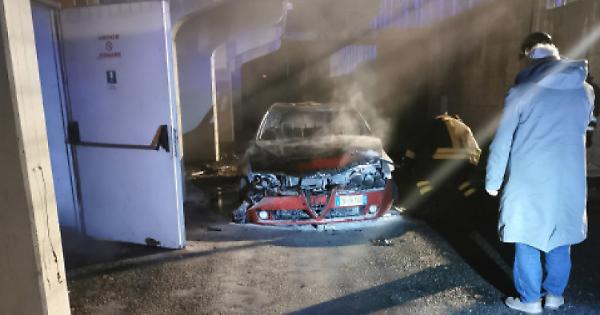 L'auto che è stata incendiata nella zona degli spogliatoi del campo sportivo “Don Mosso”, una decina di giorni fa. L’auto è risultata rubata