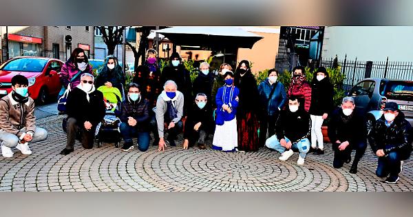 In foto, il gruppo del Centro di Studi Settimesi dopo la distribuzione della polenta da asporto, un momento di tradizione rispettato nonostante le restrizioni.