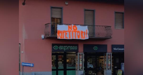 Uno degli striscioni comparsi in paese contro i ripetitori