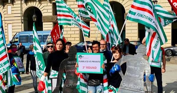 Il presidio dei lavoratori dell'Ospedale sotto la sede della Regione Piemonte