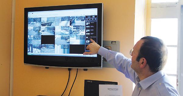 Il comandante Teppa mostra lo schermo su cui (in teoria) dovrebbero confluire le immagini delle telecamere