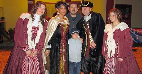Tavagnasco Fabio Morello e Monica Sambuco con il figlio Damiano, il Presidente della Pro Loco Paolo Avignone e le damigelle Eleonora e Giulia Girodo