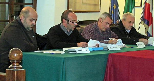 I consiglieri della minoranza "Per un Paese da Vivere" Andrea Peruzzi, Stefano De Bei e Andrea De Stalis. A destra Dario Formento dell'altro gruppo di minoranza