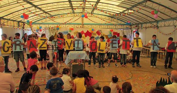 "Grazie maestra Violetta". Con questo coro di voci i piccoli alunni della scuola elementare di Feletto hanno rivolto il loro saluto all'insegnante Violetta Baudino che, dopo 41 anni ed otto mesi di servizio, si appresta ad andare in pensione. Gioia e commozione hanno caratterizzato i momenti conclusivi della recita di fine anno, che si è tenuta nel pomeriggio di giovedì 5 giugno presso il padiglione messo gentilmente a disposizione dal Gruppo Alpini, nel cortile dell'oratorio. I bambini hanno disegnato delle lettere a caratteri cubitali, componento una grande striscione ed hanno intonato una canzoncina, preparate per l'occasione, in rima.... "grazie maestra Violetta, anche se te ne vai così in fretta. A volte siamo stati un po' monelli ma siamo tanto belli... la scuola è ormai finita, andiamo a studiare per la vita".
