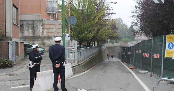 Gli agenti della municipale di Settimo all'uscita del sottopasso