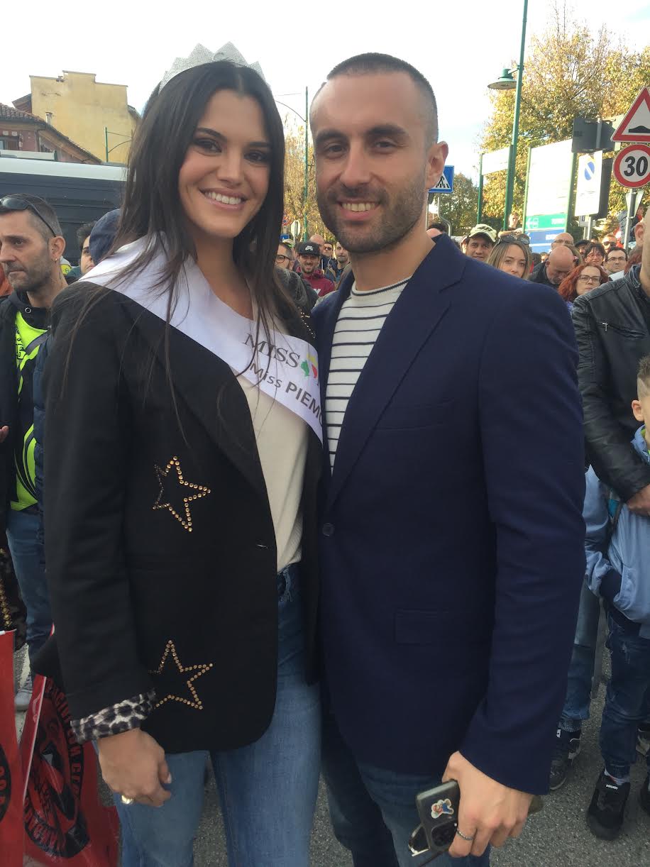 Miss Italia Piemonte, Giulia Giada Cordaro, con il compagno in piazza a Chivasso per Pecco