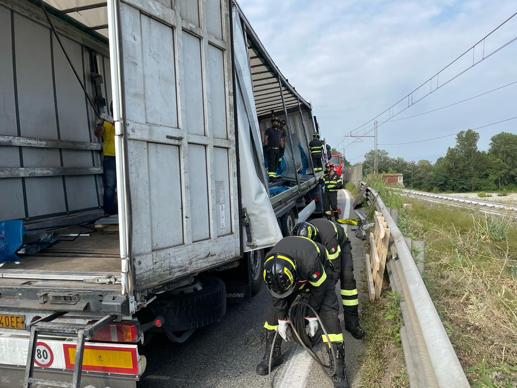 Uno degli ultimi incidenti, con inevitabili disagi alla circolazione, sul ponte Sant'Anna di Verolengo