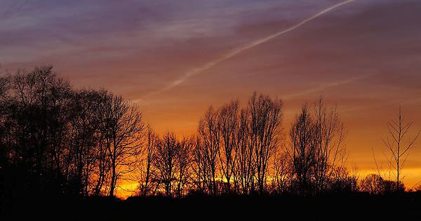Le scie lasciate dagli aerei in un cielo al tramonto (archivio)