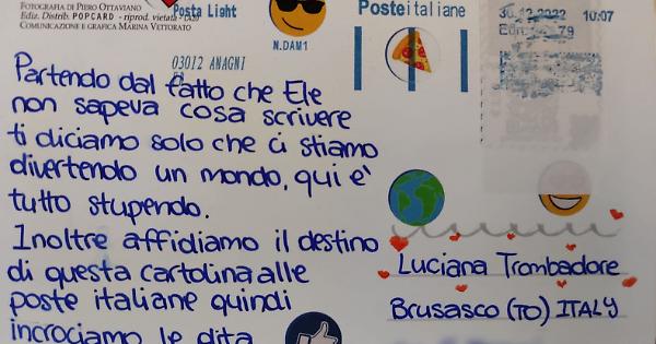 “Quando i mie ragazzi vanno in vacanza l'unica richiesta è che mi spediscano una cartolina... mi fa star bene riceverla, pensare a quando era il nostro unico mezzo di comunicazione in estate per dire ai nostri amici dove ci stavamo divertendo… Cartolina spedita luglio 2022 dalle 5 Terre Liguria, arrivata al centro smistamento il 30/12/2022 e consegnata due giorni fa... ma che giro ha fatto??? Ironia della sorte... provate a leggere cosa mi aveva scritto Veronia nella cartolina…”.