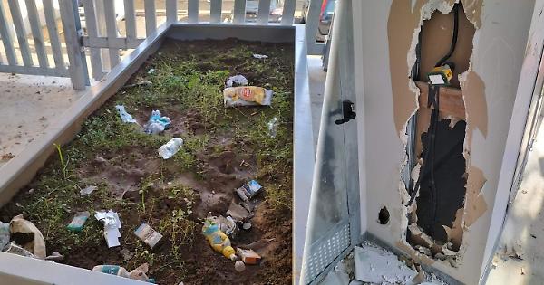 I vandali hanno oltrepassato la recinzione e si sono scatenati contro una parete della struttura, prendendola “a picconate” o con qualsiasi altro oggetto atto ad offendere. Fino a sfondarla. Inoltre hanno gettato nelle fioriere carte, cartacce e immondizia varia: ma questo è probabilmente il risultato di raid compiuti in momenti diversi.