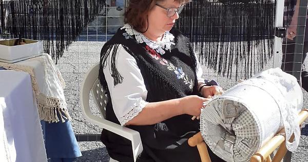 Mariella Baccinelli mentre intreccia un merletto a tombolo