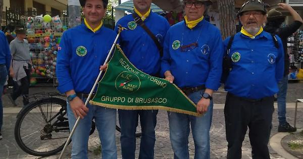 Alcuni componenti del gruppo Alpini di Brusasco con il presidente Massimiliano Irico