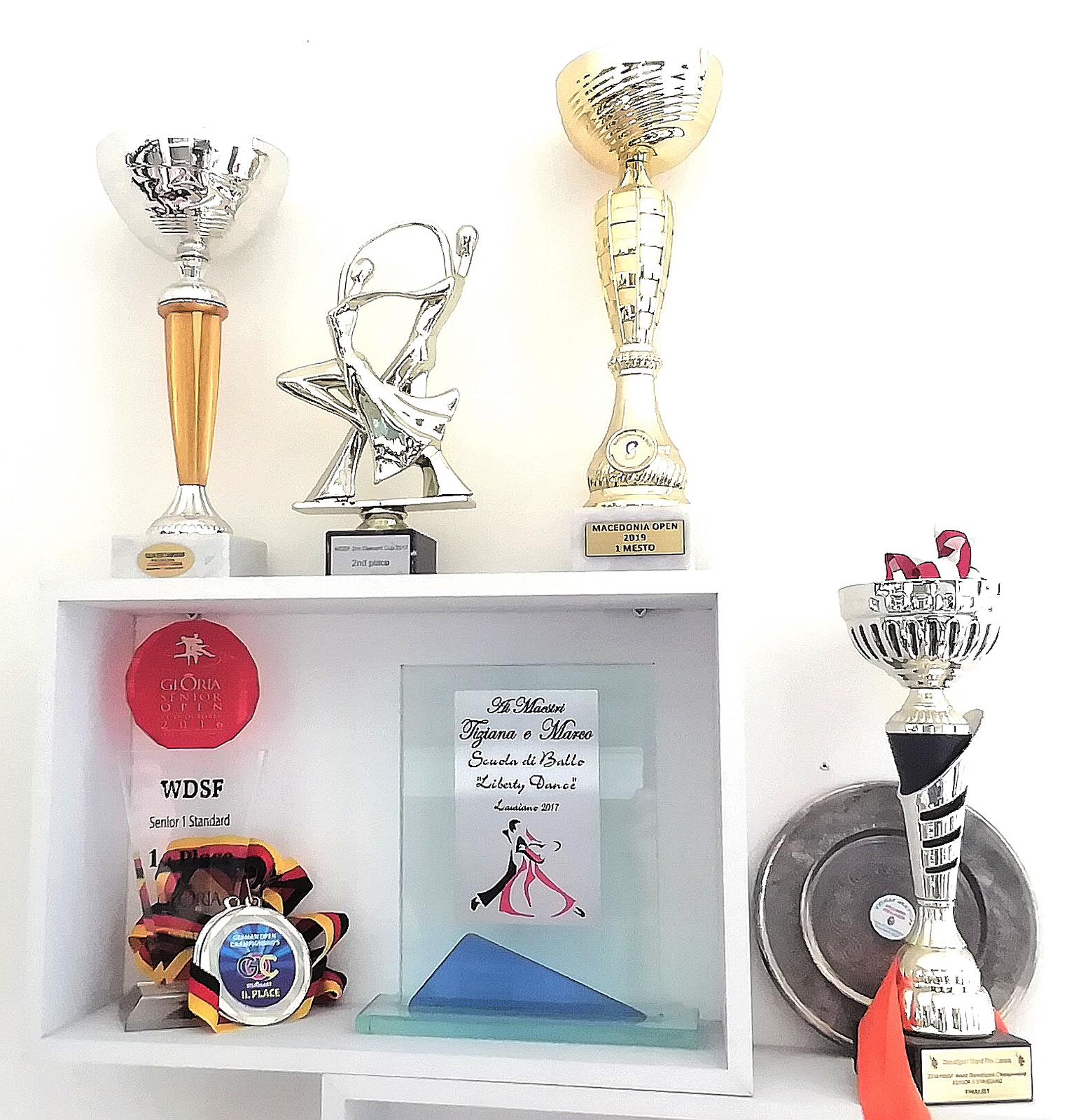 Il locale è pieno di foto di Tiziana e Marco in bellissimi abiti, foto scattate durante le varie competizioni alle quali hanno preso parte.