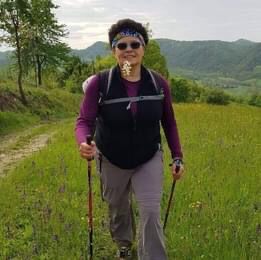 “Ho iniziato a camminare, al di là di voler fare un poco di attività fisica, per portare a spasso i miei cani.” Tocca a Fabrizia proseguire quest’unico bel racconto del Cammino. “Facevo parte della precedente amministrazione comunale di Cavagnolo, mi occupavo della parte socio-sanitaria, e ricordo la mail inviata nel 2017 dal Dipartimento Promozione della Salute dell'ASL TO4, il cui oggetto era l’invito a tutti i comuni di partecipare al corso di W.L., illustrando gli obiettivi del progetto. Cercai in paese qualcuno che avesse la voglia e il tempo da dedicare a questo progetto, ma non trovai nessuno. Terminato il mio mandato, cambiai lavoro e non mi presentai alle successive elezioni amministrative di Cavagnolo e decisi, avendo a disposizione più tempo libero, di seguire il corso di formazione per W.L.”