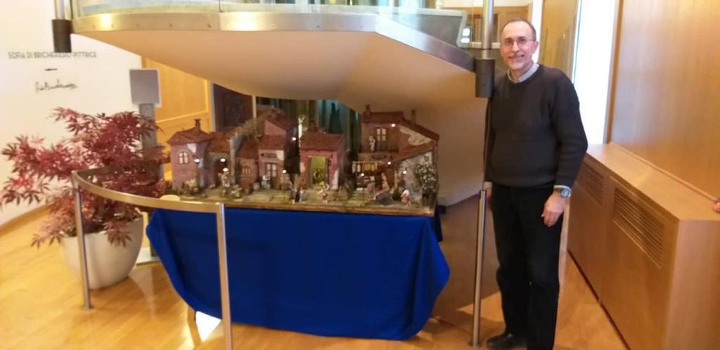 “Prima di salutarvi mi piacerebbe ancora parlarvi di alcuni dei lavori di cui vado molto fiero: quelli realizzati per diverse filiali di Banca Patrimoni Sella presenti sul territorio nazionale ed anche quello esposto nella loro sede centrale di Torino, a Palazzo Bricherasio, in via Lagrange. Inoltre ho l’onore di aver realizzato un presepe per il Consiglio Regionale del Piemonte di via Alfieri, sempre a Torino, e aggiungo anche che con il gruppo di amici presepisti abbiamo delle nostre opere nelle vetrine dell’URP in via Arsenale. E’ davvero bello poter diffondere e condividere la nostra arte” afferma sorridendo.