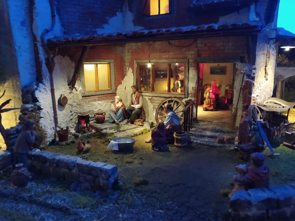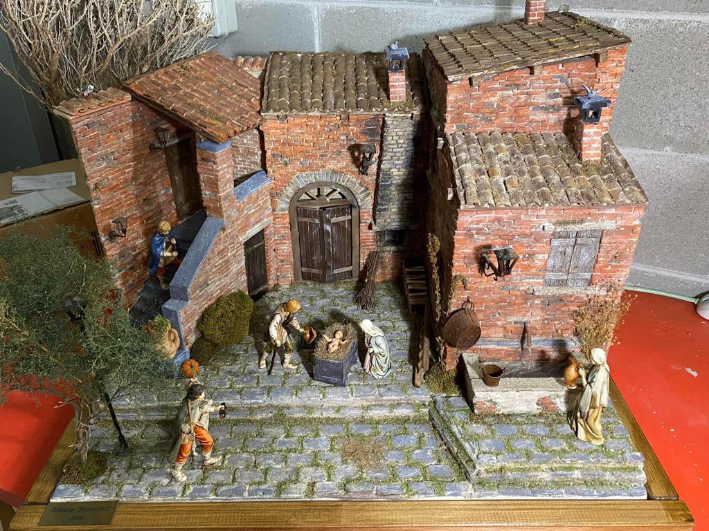 A Oropa, in negozio, Ermete vendeva anche le statuine del presepe; made in Italy, molto belle, di quelle che non si trovavano molto in circolazione. Ci ha puntato parecchio sopra ed un giorno ha conosciuto una presepista, allora ottantenne, ovvero la signora Rosanna Bramante. “In quelle che vendevo ha riconosciuto le statuine che acquistava lei in passato e le sono piaciute molto. Ha regalato tre suoi lavori ad Oropa e nel tempo mi ha letteralmente ‘contagiato’ con la sua passione; abbiamo anche scoperto di abitare vicini e così abbiamo iniziato a realizzare insieme dei presepi. Mi ha instradato verso questo bellissimo mondo, eravamo intorno al 2014/15, e da lì ho iniziato a frequentare corsi, a conoscere altri appassionati tramite Facebook e nel 2019 ho tenuto e organizzato io stesso un corso di tecniche presepiali ad Oropa, e devo dire che ha avuto davvero un bel successo - racconta -. Ho esposto i miei lavori partecipando ad alcune mostre e quest’anno, insieme a degli amici, abbiamo fondato il gruppo ‘APT’, ovvero ‘Artigiani del Presepe Torino’, che è da poco diventata un’associazione. Insieme abbiamo creato delle opere che abbiamo esposto, e fra gli eventi più importanti c’è stata la partecipazione alla rassegna organizzata all’interno dell’Arena di Verona nel 2022, mostra alla quale riparteciperemo anche quest’anno, ma non solo...”.