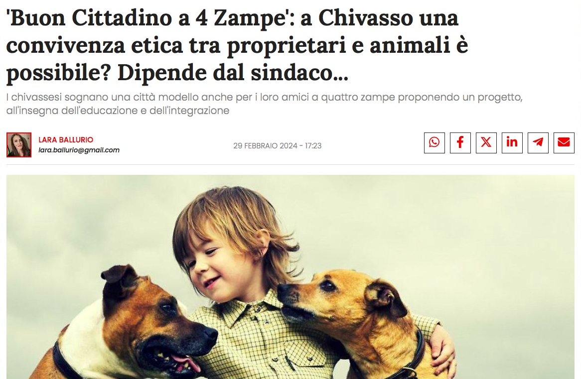 Articolo sul progetto "Buon Cittadino a 4 zampe", pubblicato su La Voce del Canavese in data 29 febbraio 2024.
